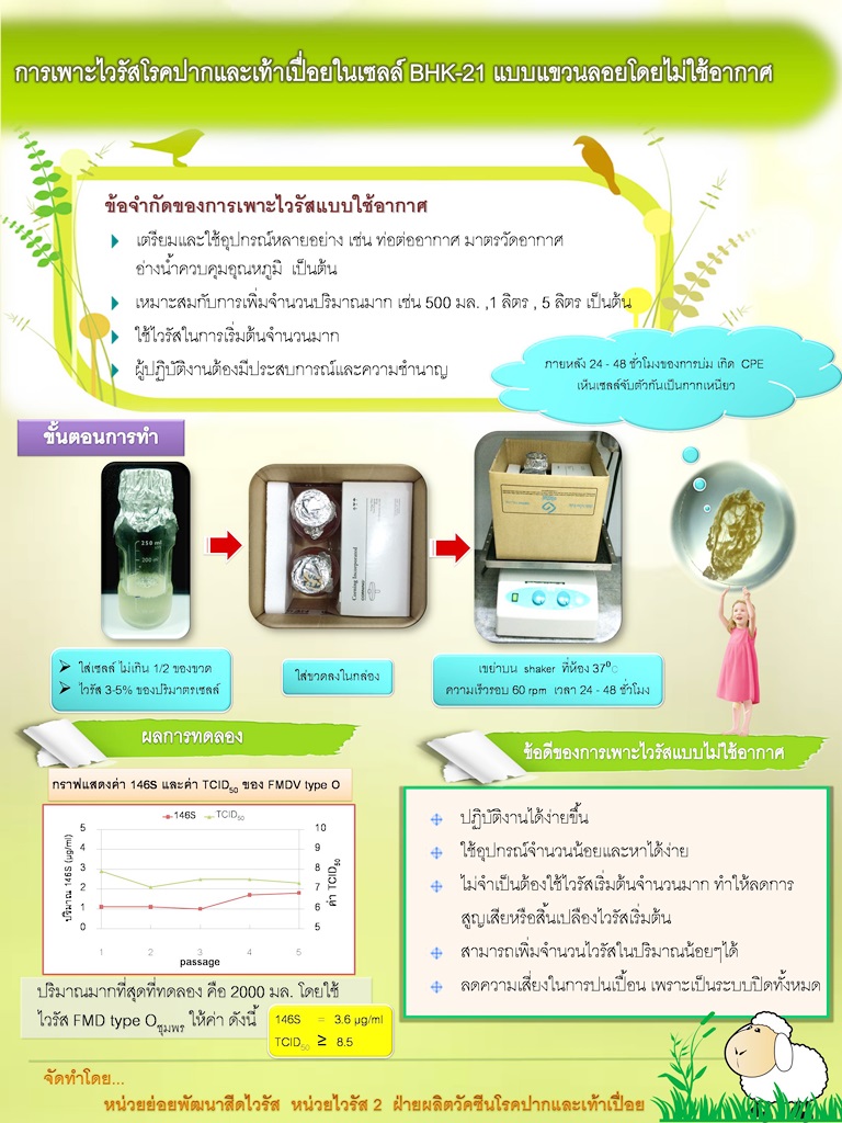 CoP60_11 CoP : การเพาะไวรัสโรคปากและเท้าเปื่อยในเซลล์ BHK-21 แบบแขวนลอยโดยไม่ใช้อากาศ > รายละเอียด