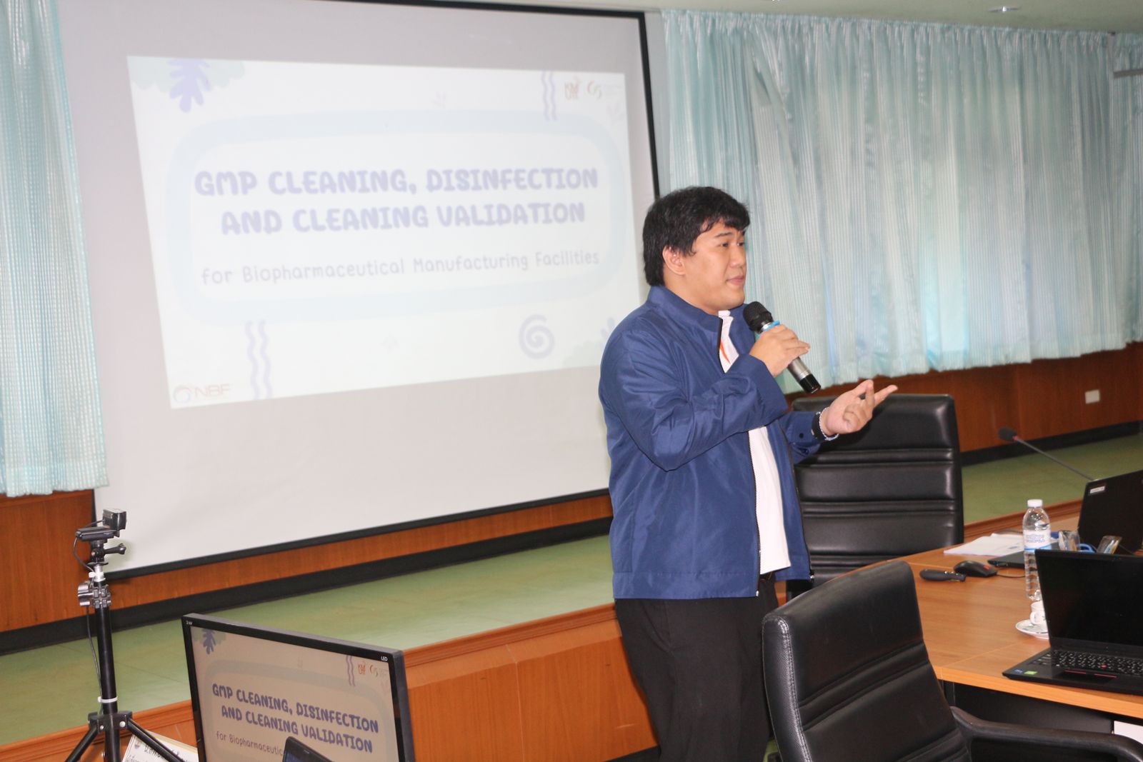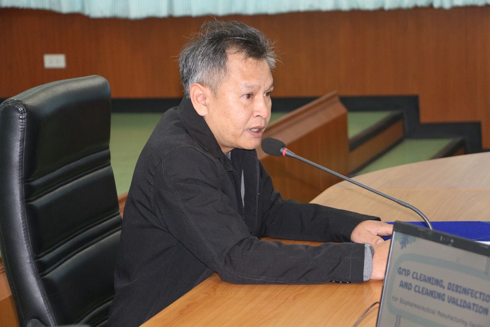 อบรมโครงการพัฒนาศักยภาพบุคลากรของสำนักเทคโนโลยีชีวภัณฑ์สัตว์การเตรียมความพร้อมในการยื่นขอรับรองมาตรฐาน GMP/PICs : กิจกรรมที่ 1 การฝึกอบรมเชิงปฏิบัติการเรื่อง"ข้อกำหนดและแนวทางปฏิบัติด้านการตรวจสอบความถูกต้องของการทำความสะอาดตามมาตรฐาน GMP/PICs"