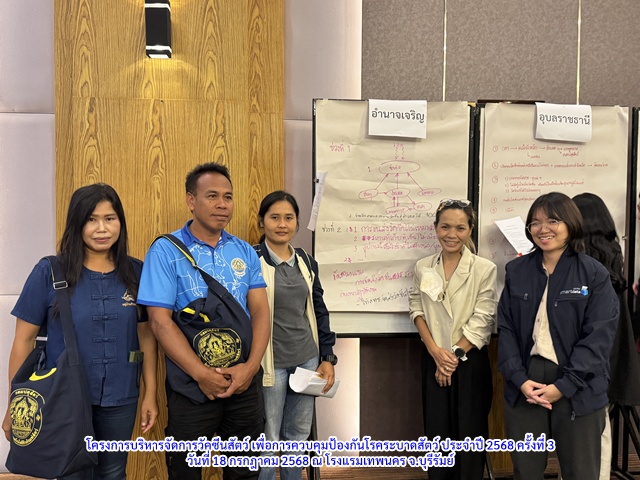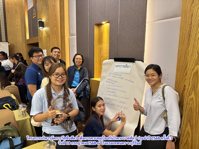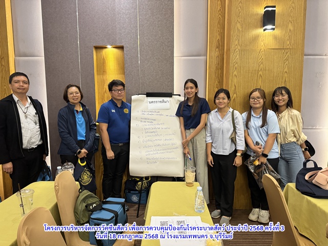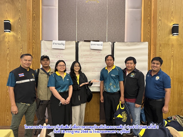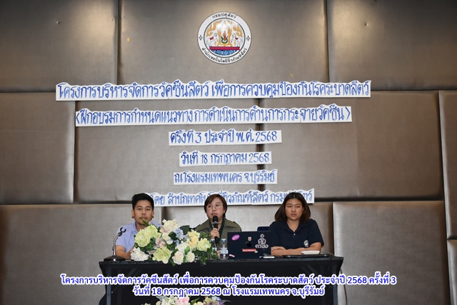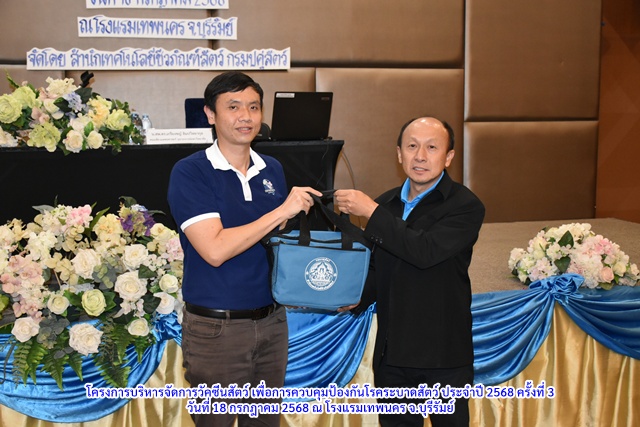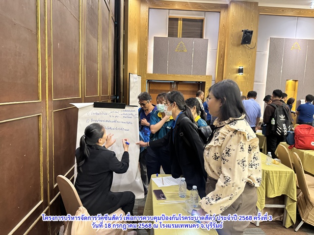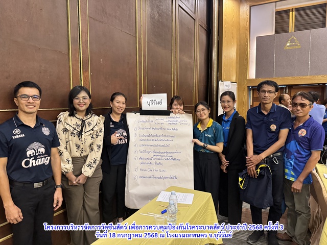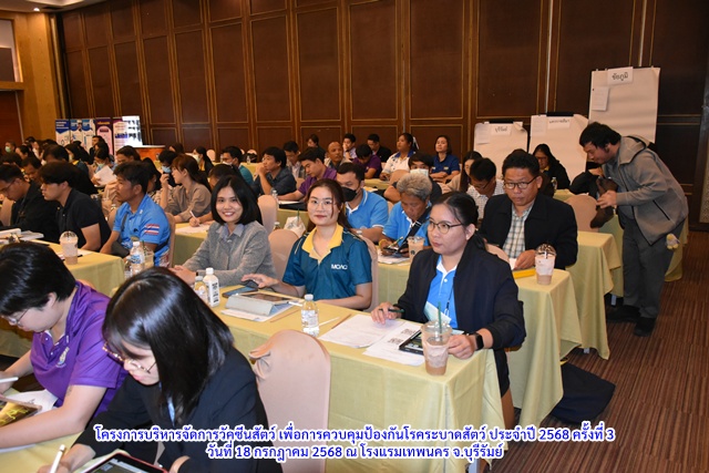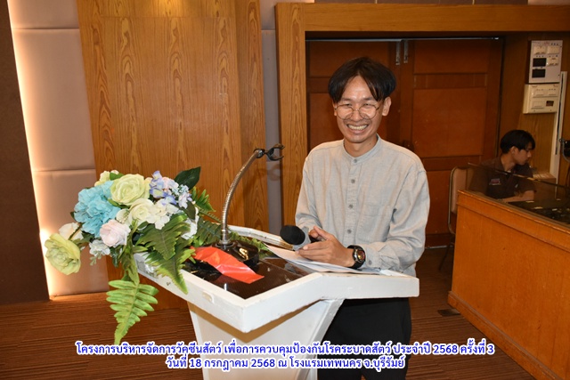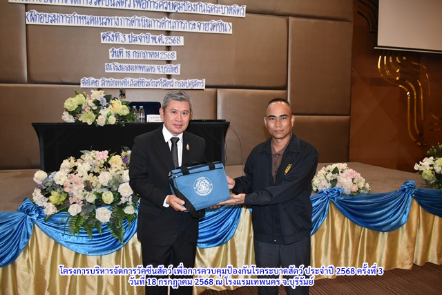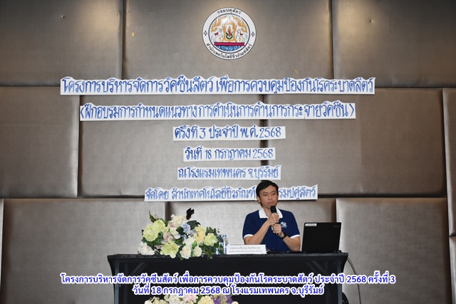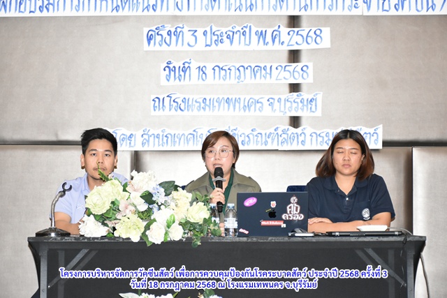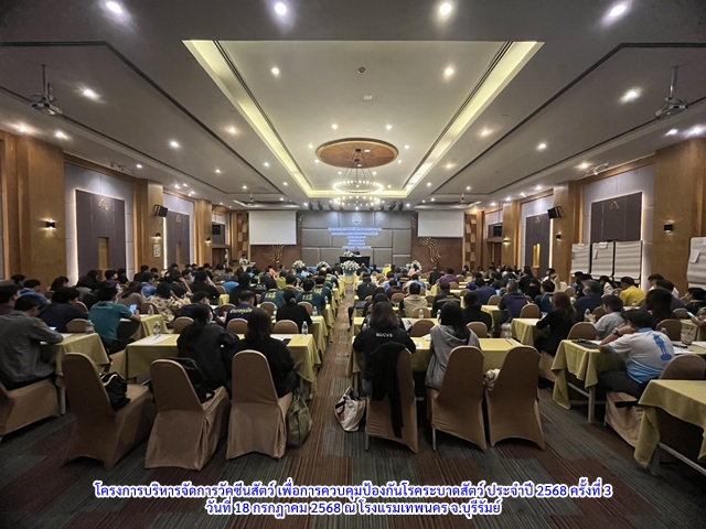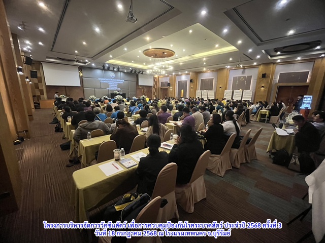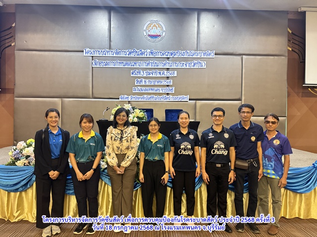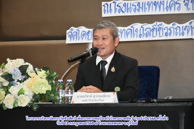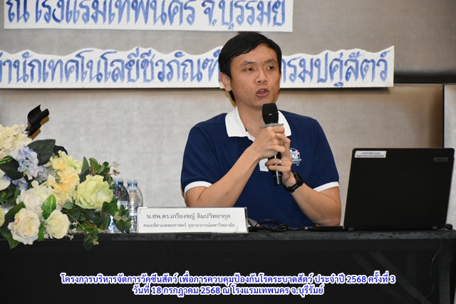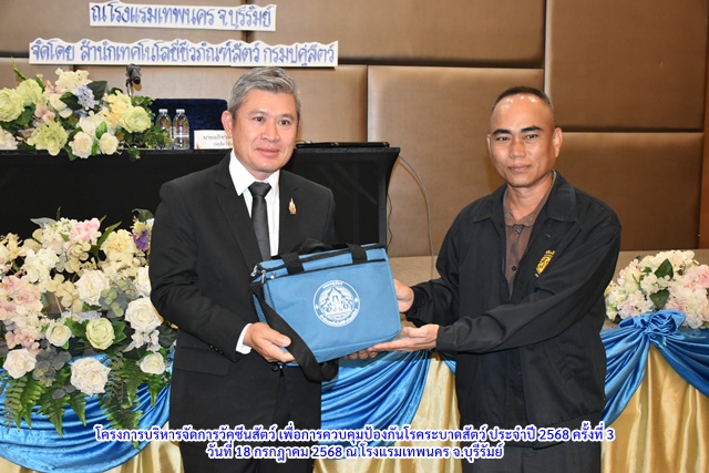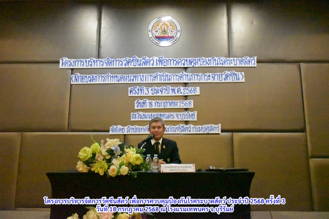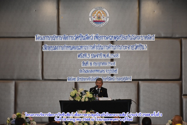 วันที่ 18 กรกฎาคม 2568 นายสัตวแพทย์อดิศร ชาติสุภาพ ปศุสัตว์เขต 3 มอบหมายให้ นายสัตวแพทย์อภิชาติ สุวรรณชัยรบ ปศุสัตว์จังหวัดบุรีรัมย์ เป็นประธานเปิดการโครงการบริหารจัดการวัคซีนสัตว์เพื่อการควบคุมป้องกันโรคระบาดสัตว์ ประจำปี พ.ศ.2568 ครั้งที่ 3 จัดโดยสำนักเทคโนโลยีชีวภัณฑ์สัตว์ การจัดโครงการฝึกอบรมในครั้งนี้มีวัตถุประสงค์เพื่อการติดตาม ประเมินผล และวิเคราะห์สถานการณ์การใช้วัคซีนสัตว์ และเพื่อเพิ่มประสิทธิภาพการเบิกจ่ายวัคซีนให้ครอบคลุมและแม่นยำตามความต้องการในพื้นที่ และมีกลุ่มเป้าหมายเป็นเจ้าหน้าที่กรมปศุสัตว์ในสำนักงานปศุสัตว์เขต ปศุสัตว์จังหวัด ปศุสัตว์อำเภอ และอาสาปศุสัตว์ ในพื้นที่ปศุสัตว์เขต 3 ณ โรงแรม เทพนคร จังหวัดบุรีรัมย์