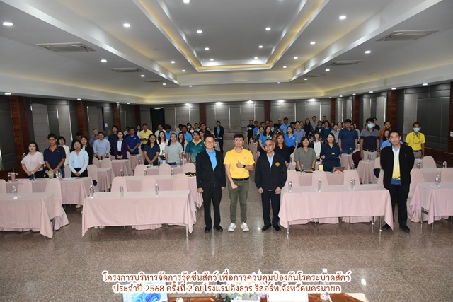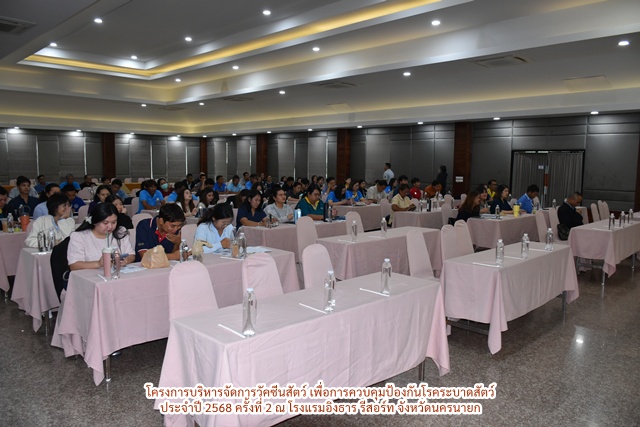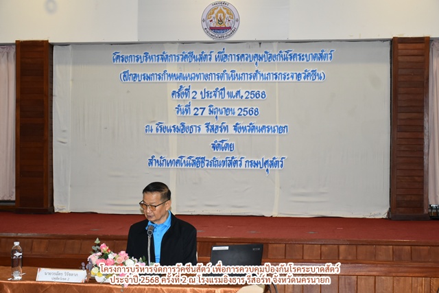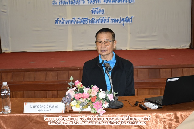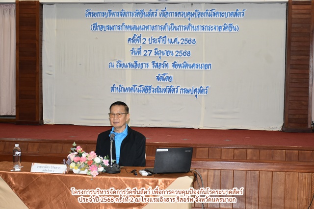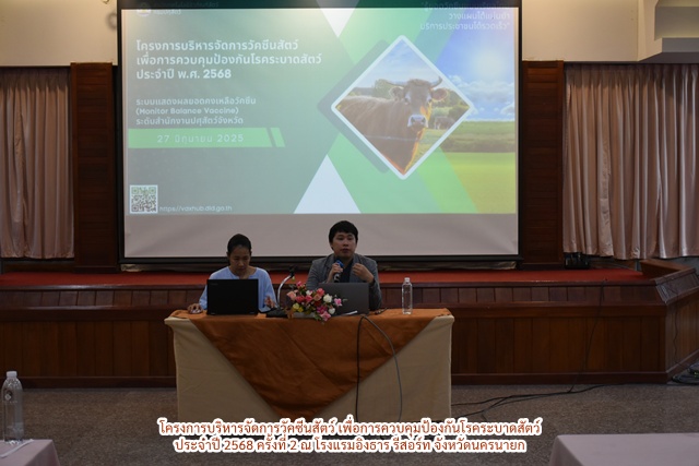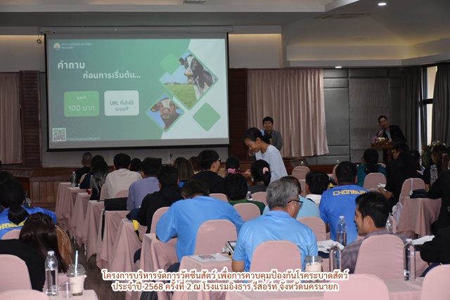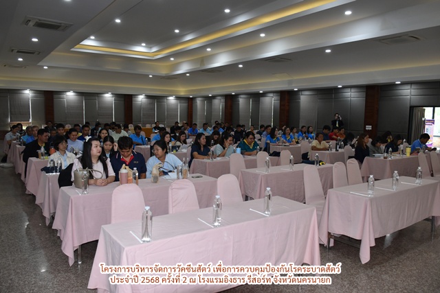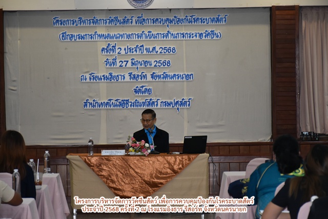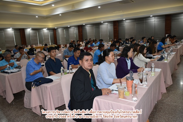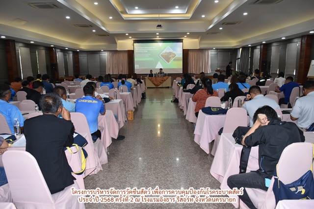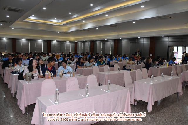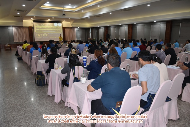 วันที่ 27 มิถุนายน 2568 นายวรฉัตร วิรัชลาภ ปศุสัตว์เขต 2 เป็นประธานเปิดการโครงการบริหารจัดการวัคซีนสัตว์เพื่อการควบคุมป้องกันโรคระบาดสัตว์ ประจำปี พ.ศ.2568 ครั้งที่ 2 จัดโดยสำนักเทคโนโลยีชีวภัณฑ์สัตว์ การจัดโครงการฝึกอบรมในครั้งนี้มีวัตถุประสงค์เพื่อการติดตาม ประเมินผล และวิเคราะห์สถานการณ์การใช้วัคซีนสัตว์ และเพื่อเพิ่มประสิทธิภาพการเบิกจ่ายวัคซีนให้ครอบคลุมและแม่นยำตามความต้องการในพื้นที่ และมีกลุ่มเป้าหมายเป็นเจ้าหน้าที่กรมปศุสัตว์ในสำนักงานปศุสัตว์เขต ปศุสัตว์จังหวัด ปศุสัตว์อำเภอ และอาสาปศุสัตว์ ในพื้นที่ปศุสัตว์เขต 2 ณ โรงแรมอิงธารรีสอร์ท จังหวัดนครนายก