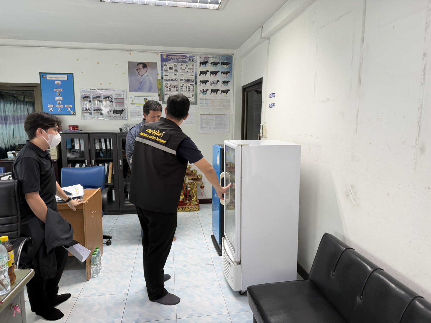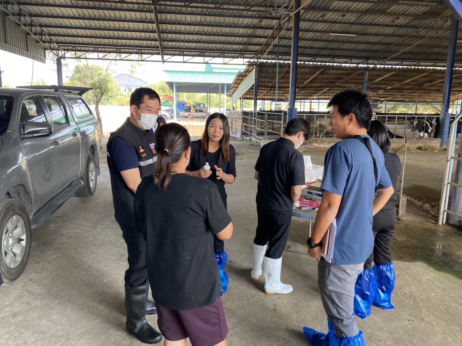 วันที่ 15 มกราคม 2569 น.สพ. จาตุรนต์ พลราช ผู้อำนวยการสำนักเทคโนโลยีชีวภัณฑ์สัตว์ มอบหมายให้ น.สพ.อนุรักษ์ ตระการรังสี น.สพ.รุชติโรจน์ จิโรจน์วงศ์ และ น.สพ.ภูทอง เนาวรัตน์พนมมาศ ลงพื้นที่ร่วมกับเจ้าหน้าที่จากสำนักงานปศุสัตว์อำเภอกำแพงแสน สำนักงานปศุสัตว์จังหวัดนครปฐม ด่านกักกันสัตว์นครปฐม และสำนักงานปศุสัตว์เขต 7 ในการติดตามรูปแบบการบริหารจัดการวัคซีนโรคปากและเท้าเปื่อย ในโคนม ของศูนย์รวบรวมน้ำนมดิบ ศิริโชค กรุ๊ป ซึ่งมีสมาชิกส่งนมในเขตพื้นที่รอยต่อ 3 จังหวัด ประกอบด้วย จังหวัดนครปฐม จังหวัดราชบุรี และจังหวัดกาญจนบุรี โดยมีความร่วมมือระหว่างเกษตรกร ศูนย์รวบรวมน้ำนมดิบ และภาครัฐ เป็นอย่างดี พร้อมกันนี้ได้ติดตามข้อมูลการใช้วัคซีนในฟาร์มโคนมของเกษตรกร