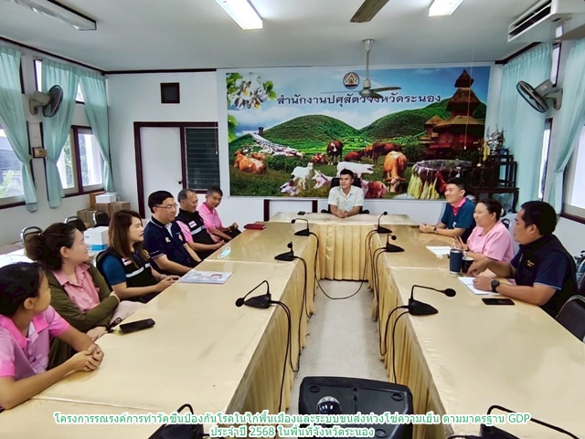 วันที่ 23-27 มิถุนายน 2568 นายสัตวแพทย์จาตุรนต์ พลราช ผู้อำนวยการสำนักเทคโนโลยีชีวภัณฑ์สัตว์ มอบหมายให้นายสัตวแพทย์นพคุณ มูลสิน หัวหน้าฝ่ายทดสอบคุณภาพวัคซีนสัตว์ปีกและประธานคณะทำงานยุทธศาสตร์ไก่พื้นเมือง นำทีมลงพื้นที่ตามโครงการรณรงค์การทำวัคซีนป้องกันโรคในไก่พื้นเมืองและระบบขนส่งห่วงโซ่ความเย็น ตามมาตรฐาน GDP ประจำปี 2568 ในพื้นที่จังหวัดระนอง โดยคณะทำงานได้เข้าพบนายสัตวแพทย์สุกิจ ประทุมชัย ปศุสัตว์จังหวัดระนอง เพื่อแนะนำตัวและปฏิบัติงานร่วมกับคณะเจ้าหน้าที่สำนักงานปศุสัตว์จังหวัดระนอง