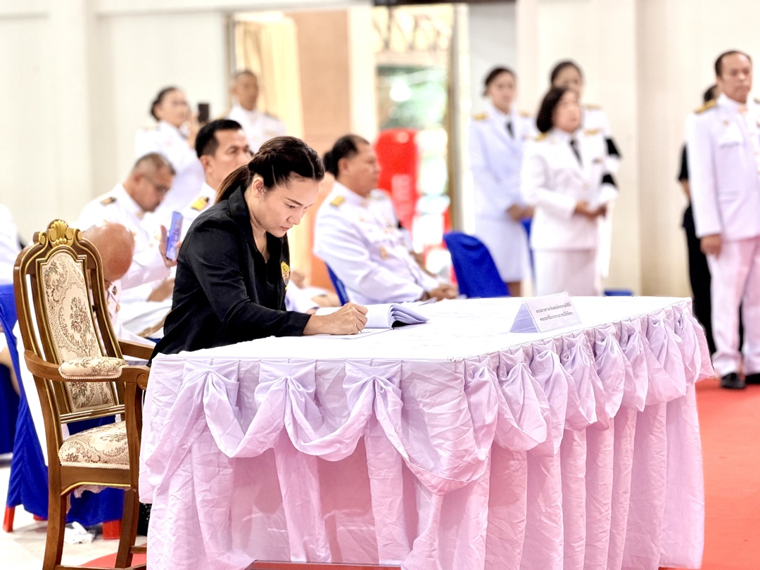 วันอาทิตย์ที่ 26 ตุลาคม 2568 นายจาตุรนต์ พลราช ผู้อำนวยการสำนักเทคโนโลยีชีวภัณฑ์สัตว์ มอบหมายให้ข้าราชการและเจ้าหน้าที่ของสำนักเทคโนโลยีชีวภัณฑ์สัตว์ เข้าร่วมพิธีถวายน้ำสรงพระบรมศพเบื้องหน้าพระฉายาลักษณ์ สมเด็จพระนางเจ้าสิริกิติ์ พระบรมราชินีนาถ พระบรมราชชนนีพันปีหลวง ณ ศาลาประชาคมเมืองปากช่อง อำเภอปากช่องจังหวัดนครราชสีมา โดยมี นายไพรัตน์ อินทร์ปัญญา นายอำเภอปากช่อง เป็นประธานในพิธี พร้อมด้วยหัวหน้าส่วนราชการ ข้าราชการทุกหมู่เหล่า หน่วยงานภาครัฐ ภาคเอกชน จิตอาสาพระราชทาน นักเรียน นักศึกษา และประชาชนชาวอำเภอปากช่อง เข้าร่วมพิธีด้วยความจงรักภักดีและสำนึกในพระมหากรุณาธิคุณอย่างหาที่สุดมิได้
